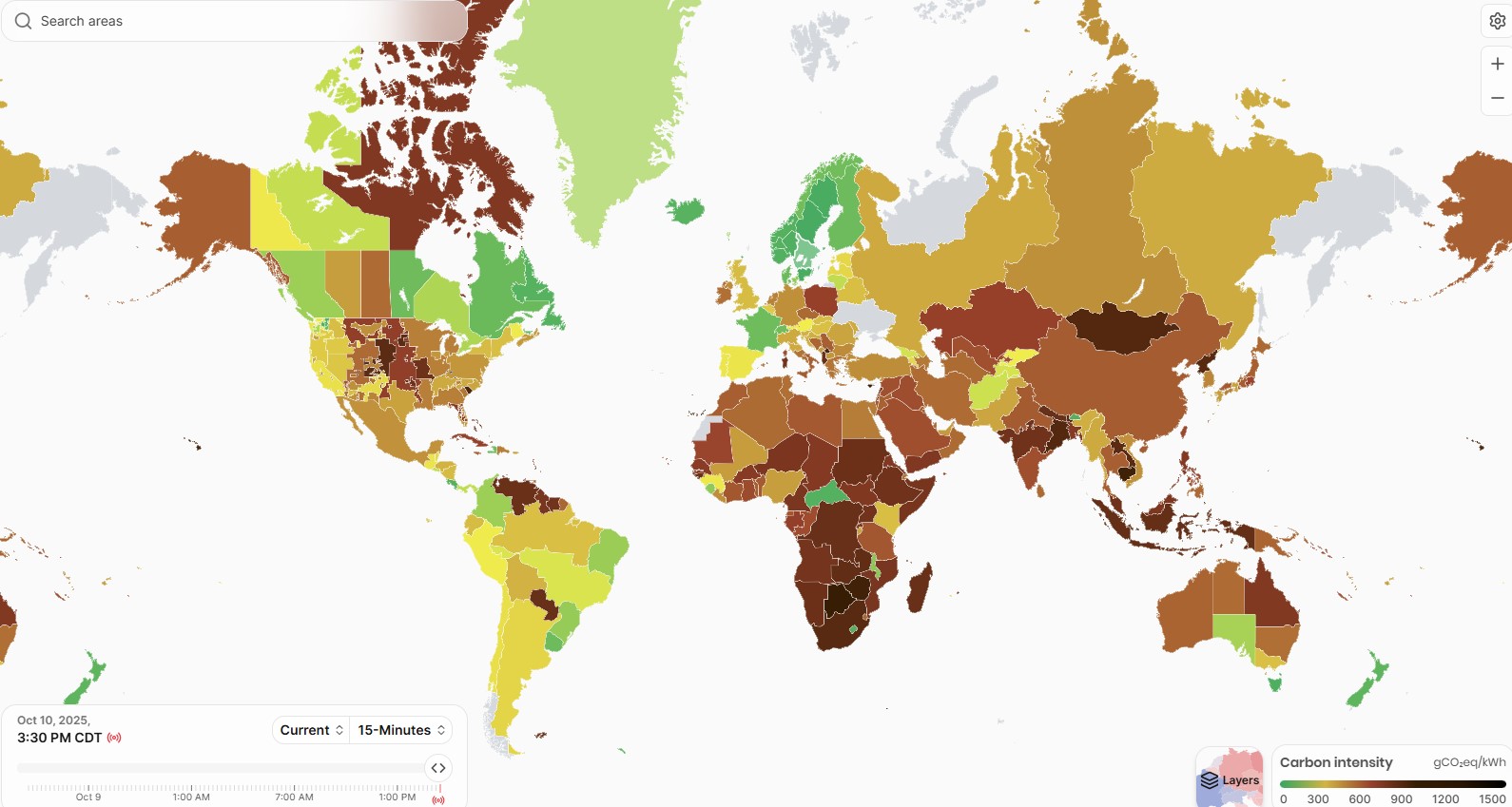 It is really hard to know! One map that I found recently that I think is really cool is this one: https://app.electricitymaps.com/map/live/fifteen_minutes You can zoom into different parts of the world and see how clean the electric grid is at any given moment. In some parts of the world it'll also show you those electric flows - as I type this, France is selling very clean energy to Germany, which is selling moderately dirty energy to Poland, which is selling very dirty energy to Lithuania. By clicking on a country, you can see what its electricity generation mix is. Then you can also adjust the time slider, to see how everything changes during the day when there's a lot of solar, vs. at night. If you're in the U.S., another map I can really recommend is this one: https://www.eia.gov/electricity/gridmonitor/dashboard/electric_overview/US48/US48. It looks pretty complicated at first, but you can click on what part of the country you're in, and then scroll down to the chart that shows "Electricity generation by energy source." I find it really fascinating to look at! You can check out different parts of the country and see where there's a lot of electricity from solar, wind, natural gas, coal, etc. For example in California, it looks like they don't have a lot of hydropower, but what they do use is saved for overnight, along with their massive battery supply, to support their daytime solar. Then in the Midwest, where I am, there's much less solar, but we're starting to get enough, along with wind, to be able to make a dent in our coal and natural gas generation some days. It's a really fascinating subject to learn about!
